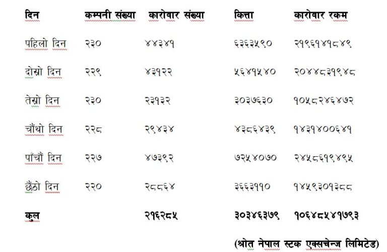 यस्तो रह्यो यो साता दैनिक सेयर कारोवार