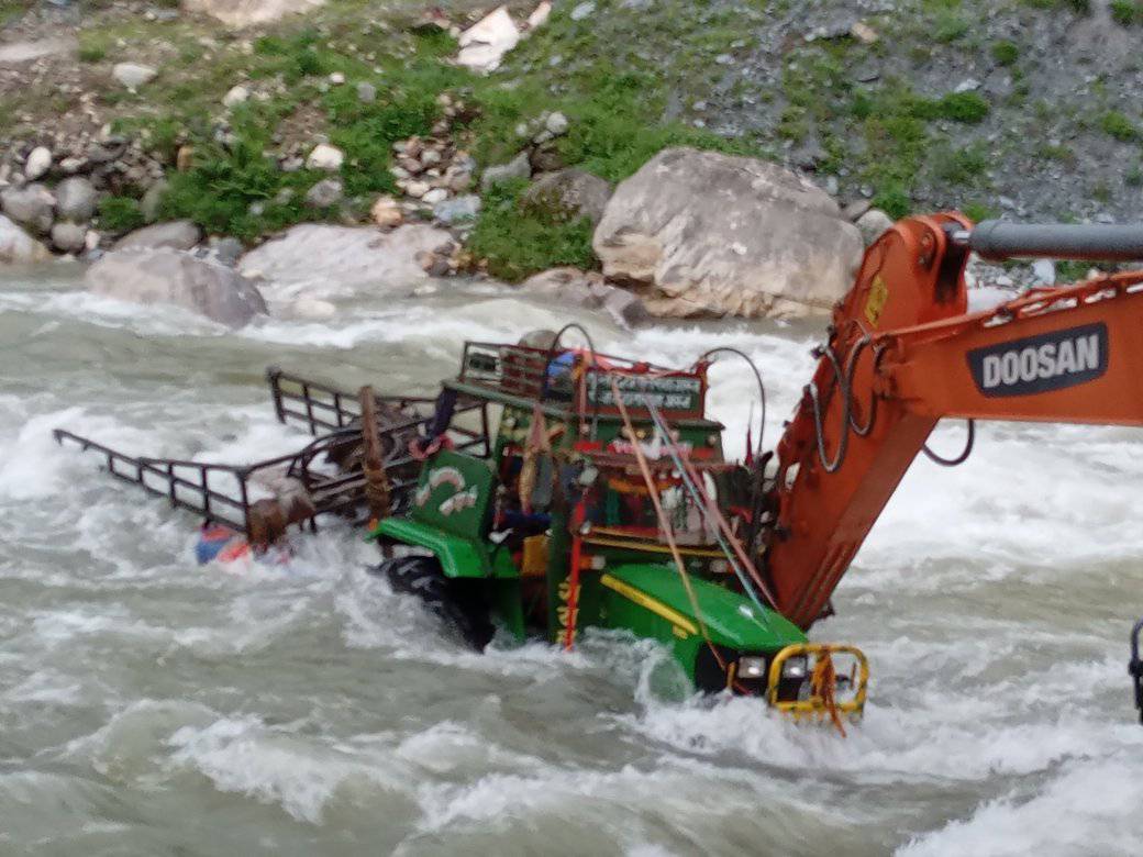 सो ट्याक्टर निकाल्न आइतबार गएको डोजर समेत नदीमै फस्दा समस्या भएको बारेकोट गाउँपालिकाका अध्यक्ष वीरबहादुर गिरीले बताए । लगातार पानी परिरहेकोले डोजर र ट्याक्टर निकाल्न समस्य भएको छ ।