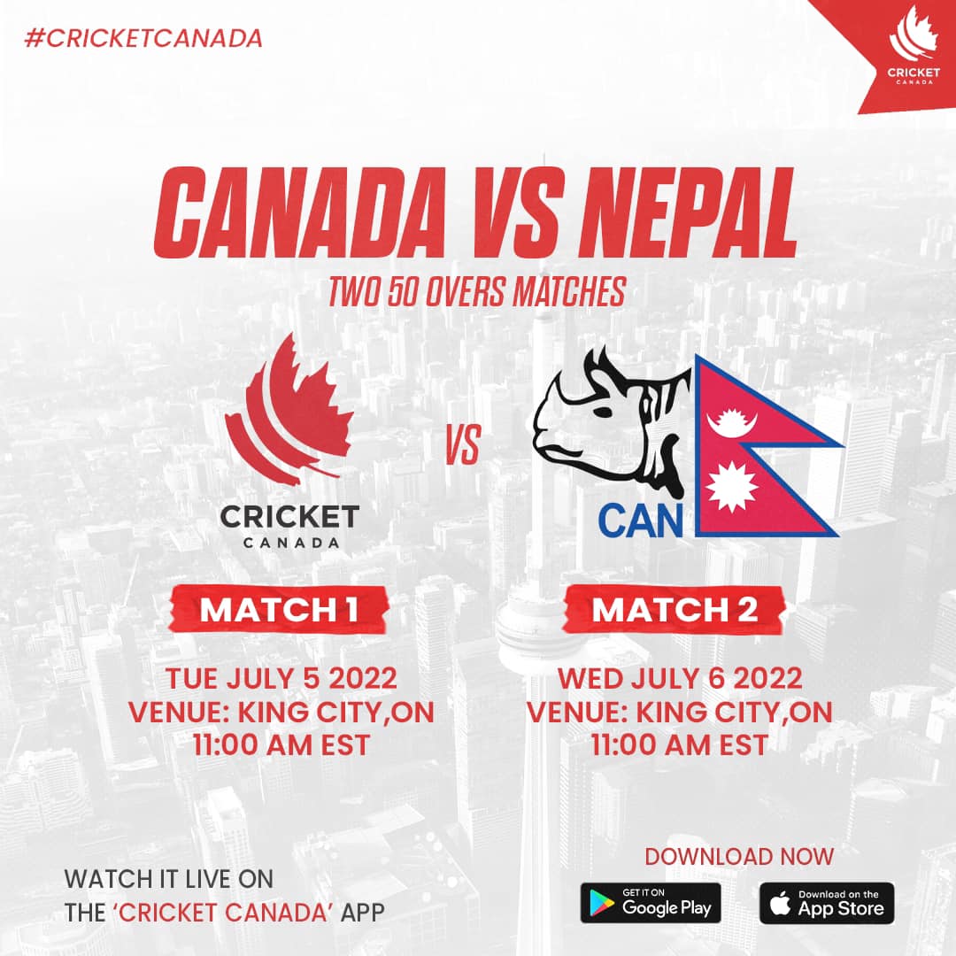 पूर्वतालिकाअनुसार ओन्टारियोसँग एक खेल खेल्ने कार्यक्रम रहेको थियो । तर, क्यानले आपसी समझदारीमा दुई खेल हुने तय भएको बताएको हो । क्यानडासँगको श्रृंखलापछि नेपाल स्कटल्यान्डमा हुने आईसीसी विश्वकप लिग २ को त्रिकोणात्मक श्रृंखला खेल्न स्कटल्यान्ड प्रस्थान गर्नेछ । जहाँ घरेलु टोली स्कटल्यान्ड, नेपाल र नामिविया भिड्नेछन् ।