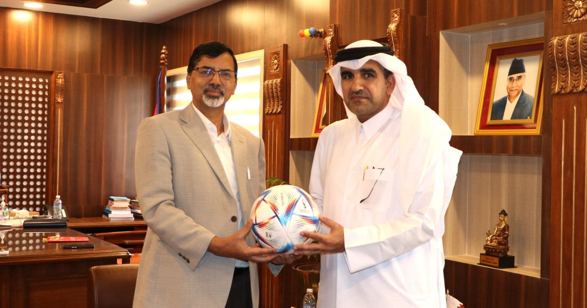 काठमाडौं । गठबन्धन सरकारका अर्थमन्त्री जनार्दन शर्मालाई कतार फिफा विश्वकप हेर्न नेपालका लागि कतारी राजदूत युसुफ बिन मोहम्मद अहमद अल हेलले आमन्त्रण गरेका छन् ।