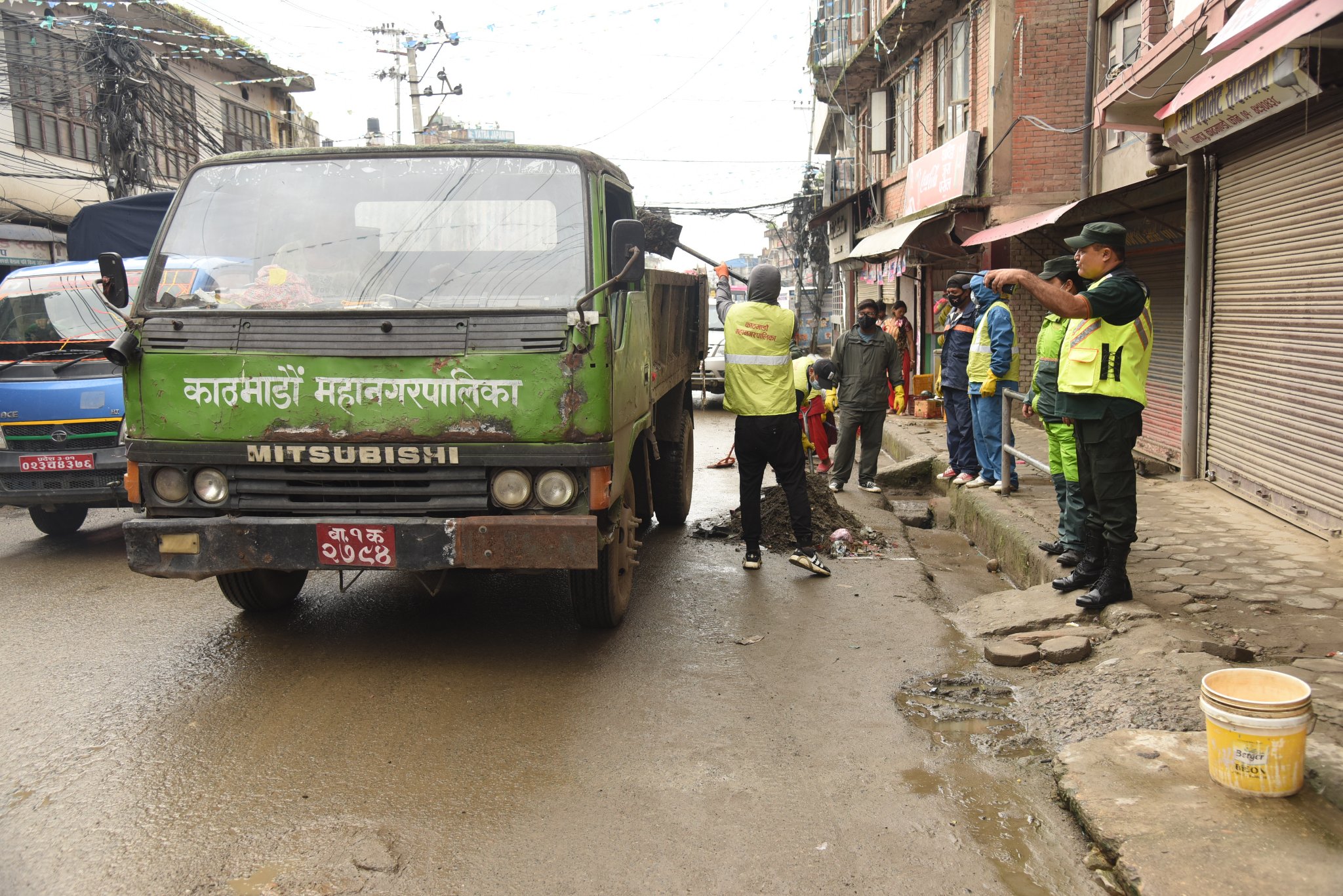 काठमाडौ । काठमाडौं महानगरपालिकाले दैनिक सरसफाई अभियान थालेको छ । महानगरले सहरी सरसफाइका लागि थप १ सय ५० जना जनशक्ति परिचालन गरेको जनाइएको छ । प्रधानमन्त्री रोजगार कार्यक्रमबाट आएका र दैनिक ज्यालादारीका जनशक्तिलाई महनगरले सरसफाईमा खटाएको हो ।