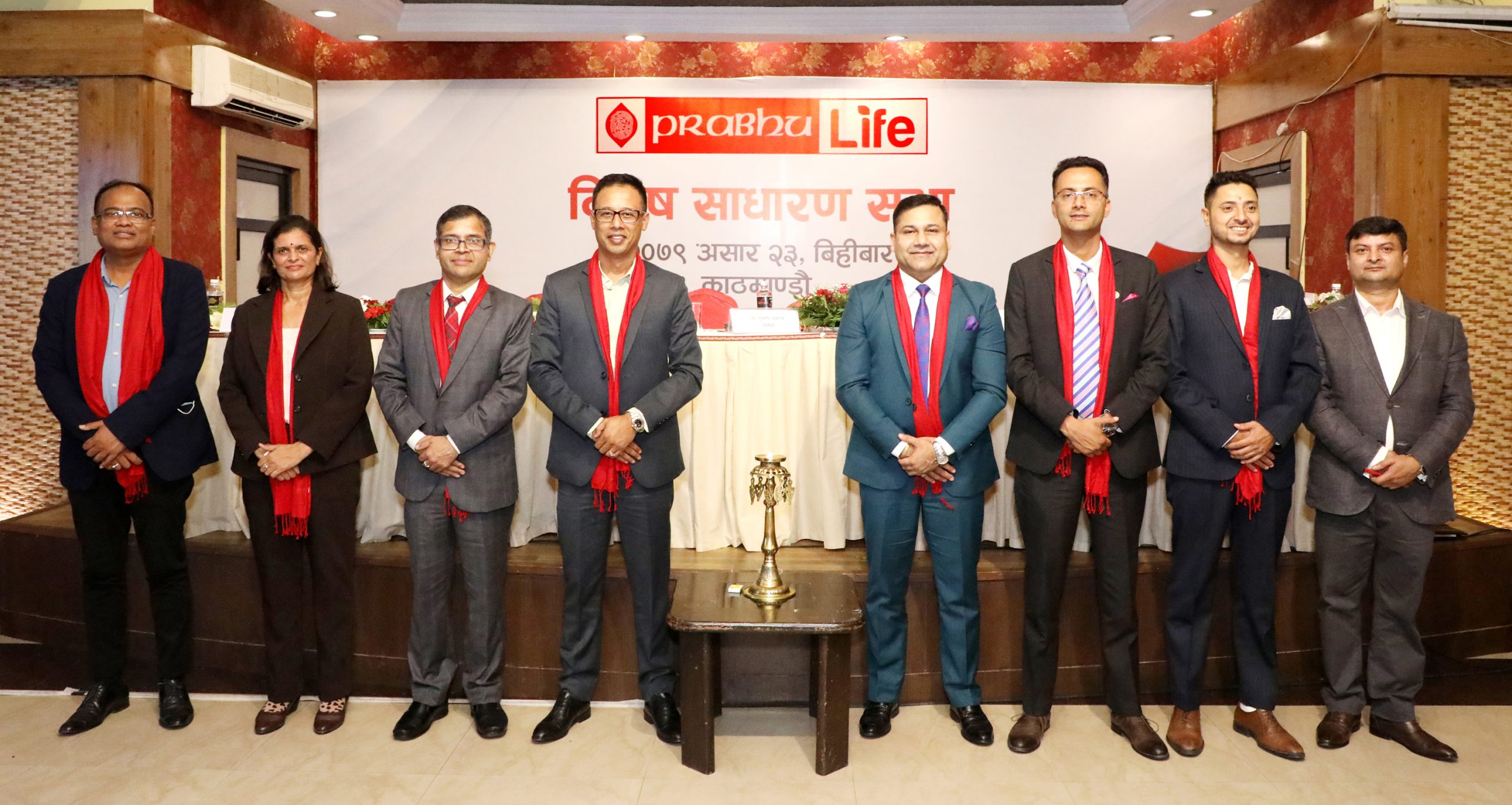 काठमाडौं । प्रभु लाइफ इन्स्योरेन्स लिमिटेडको विशेष साधारणसभा सम्पन्न भएको छ । कम्पनीको विशेष साधारणसभा आज आम्रपाली ब्याङ्क्वेट, काठमाडौंमा कम्पनीका अध्यक्ष सुभाष अमात्यको अध्यक्षतामा सम्पन्न भएको हो ।