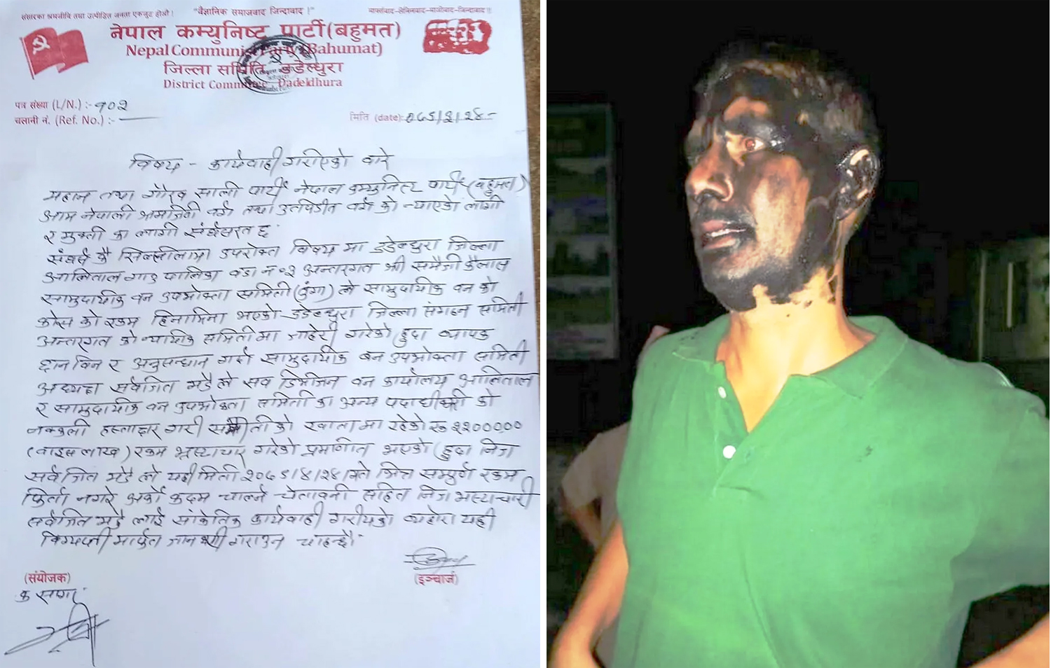 काठमाडौं । डडेल्धुरामा हिनामिना गरेकाको आरोपमा सामुदायिक वनका अध्यक्षलाई कालोमोसो दलिएको छ । नेपाल कम्युनिष्ट पार्टी (बहुमत) का कार्यकर्ताले आलिताल गाउँपालिका–३ मा रहेको समैजी कैलास सामुदायिक वन उपभोक्ता समिति (तुङ्गा) का अध्यक्ष सर्वजित मडैलाई कालोमोसो दलेका हुन् ।