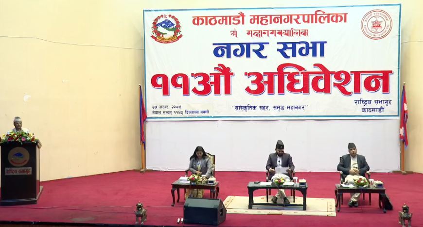 काठमाडौं । काठमाडौं महानगरपालिकाको नगर सभा ११ औँ अधिवेशन आजबाट सकिएको छ । असार ५ गतेबाट सुरु भएको अधिवेशनमा महानगरका प्रमुख बालेन्द्र शाह (बालेन) ले आर्थिक बर्ष २०७९/०८० का लागि वार्षिक नीति तथा कार्यक्रम पेश गरेका थिए । यो प्रस्ताव असार ८ गते बसेको सभाको दोस्रो बैठकले सर्वसम्मतिमा पारित गरेको थियो ।