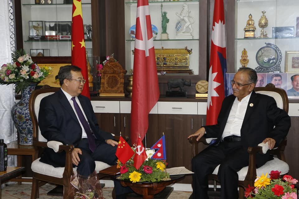 काठमाडौं । नेकपा माओवादी केन्द्रका अध्यक्ष पुष्पकमल दाहाल प्रचण्ड र चिनियाँ कम्युनिस्ट पार्टीका विदेश विभाग प्रमुख लिउ जियन्चाओबीच भेटवार्ता भएको छ ।