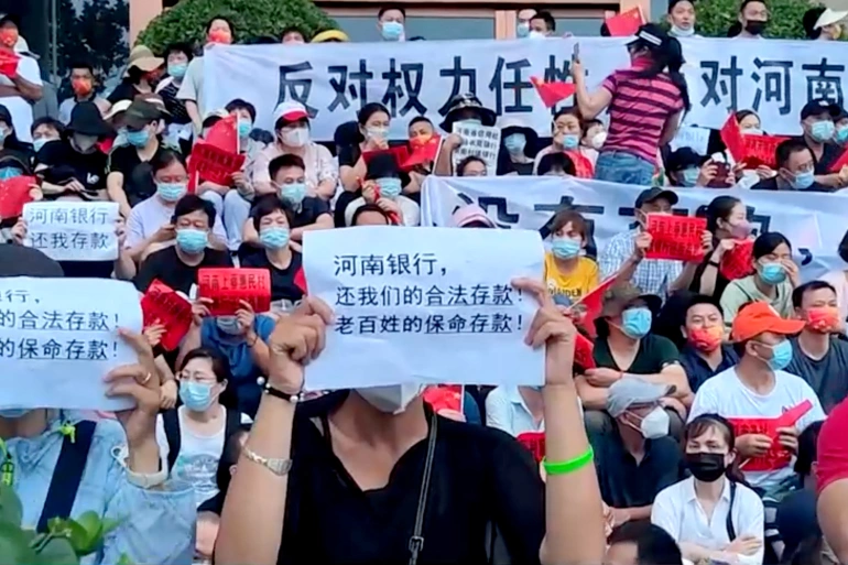 हिजो मात्रै हजारौं निक्षेपकर्ताले चीनको केन्द्रीय बैंक पिपुल्स बैंक अफ चाइना अगाडि विरोध प्रदर्शन गरेका थिए । चीनको हेनान प्रान्तका चारवटा साना ग्रामीण बैंकले विरोध प्रदर्शन गरेका छन् ।