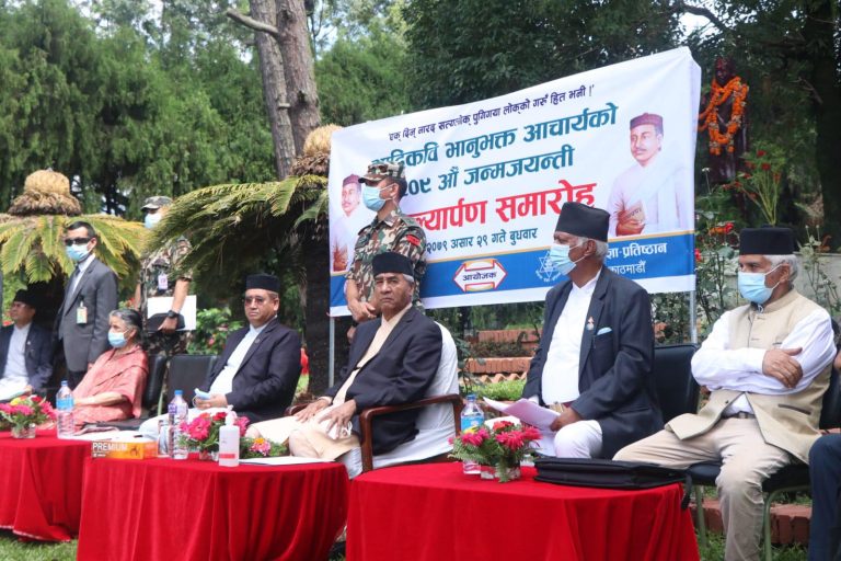 काठमाडौंमा आयोजित एककार्यक्रमका बिचमा नेपाली लोक लयमा आधारित नेपाली रामायणका रचनाकार आदिकवि भानुभक्तको शालिकमा प्रधानमन्त्री देउवाले माल्यार्पण गरेका हुन ।