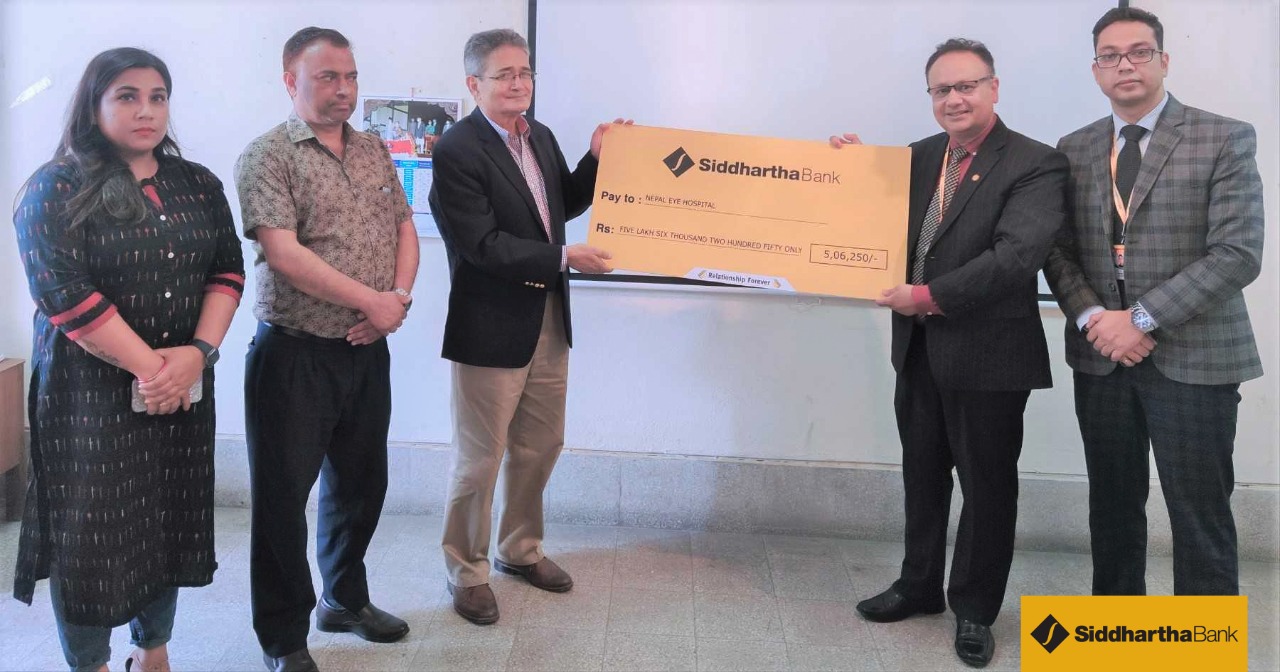 काठमाडौं । सिद्धार्थ बैंक लिमिटेडले बुधबार काठमाडौं जिल्लाको त्रिपुरेश्वरमा अवस्थित नेपाल आँखा अस्पताललाई संस्थागत सामाजिक उत्तरदायित्वअन्तर्गत ५ लाख ६ हजार दुई सय ५० रूपैयाँ आर्थिक सहयोग प्रदान गरेको छ । सो रकम बैंकका हेड अफ सर्कल अफिस, त्रिपुरेश्वरको अजय सिंह भण्डारीले नेपाल आँखा अस्पतालका अध्यक्ष डा. गोपाल प्रसाद पोखरेललाई हस्तान्तरण गरेका हुन् ।