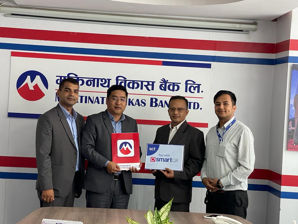 काठमाडाैं । मुक्तिनाथ विकास बैंक र नेपाल राष्ट्र बैंकबाट भुक्तानी प्रणाली सञ्चालकको अनुमतिपत्रप्राप्त स्मार्ट च्वाइस टेक्नोलोजिज लिमिटेड (एससिटी) बिच स्मार्ट क्यु आरमार्फत भुक्तानी सेवा प्रदान गर्नको लागि सम्झौता सम्पन्न भएको छ ।