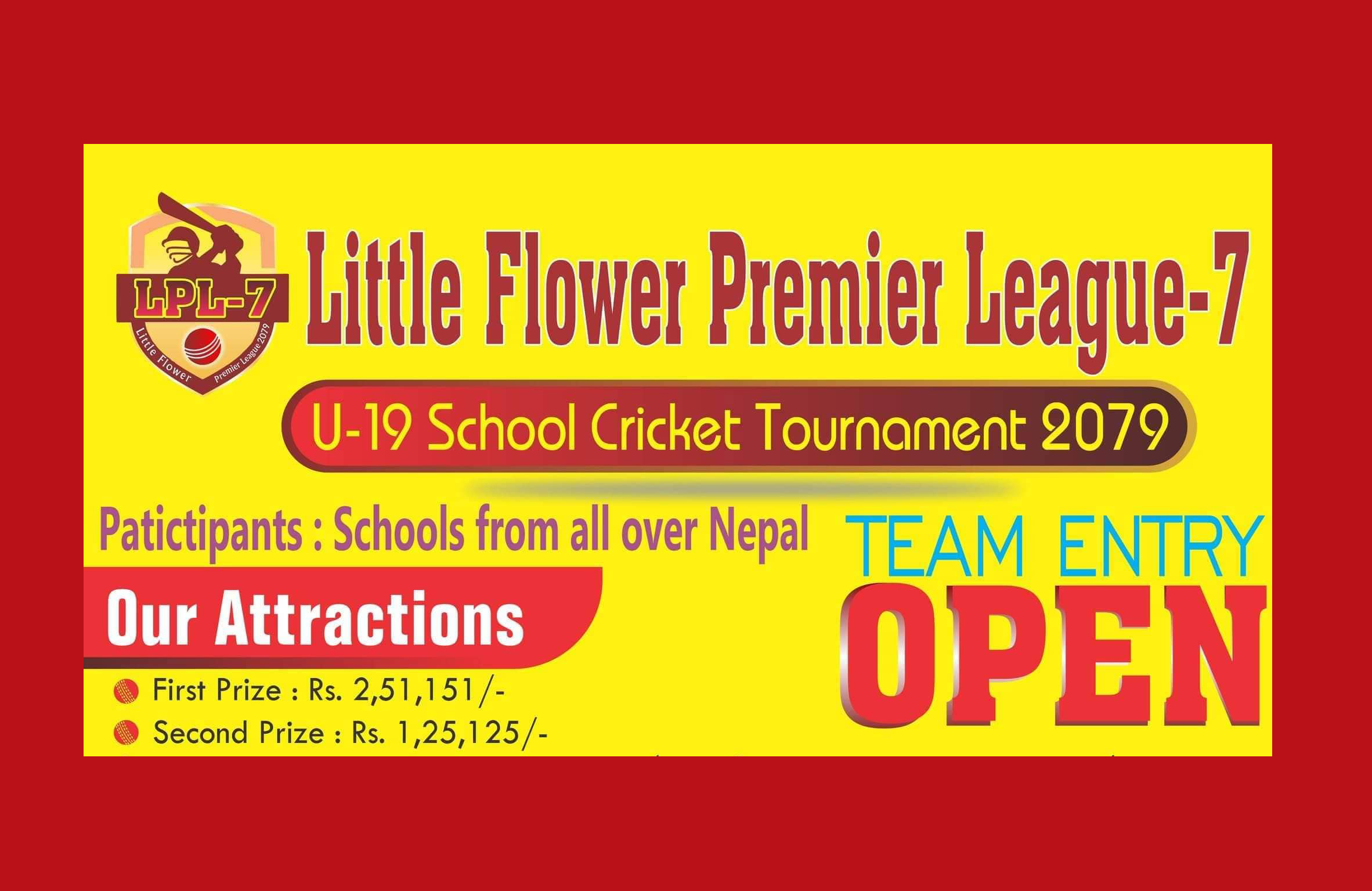 विद्यालयस्तरको क्रिकेटलाई उकास्ने र राष्ट्रिय स्तरको क्रिकेटसँग जोड्ने अभियानमा अघि बढेको लिटल फ्लावर प्रिमियर लिगले मिति घोषणा गरेको हो। लिटल फ्लावर स्पोर्टस एण्ड ईभेन्ट्सले आयोजना गर्ने प्रतियोगिताको विजेताले २ लाख ५१ हजार १५१ रुपैयाँ प्राप्त गर्ने छन्।
