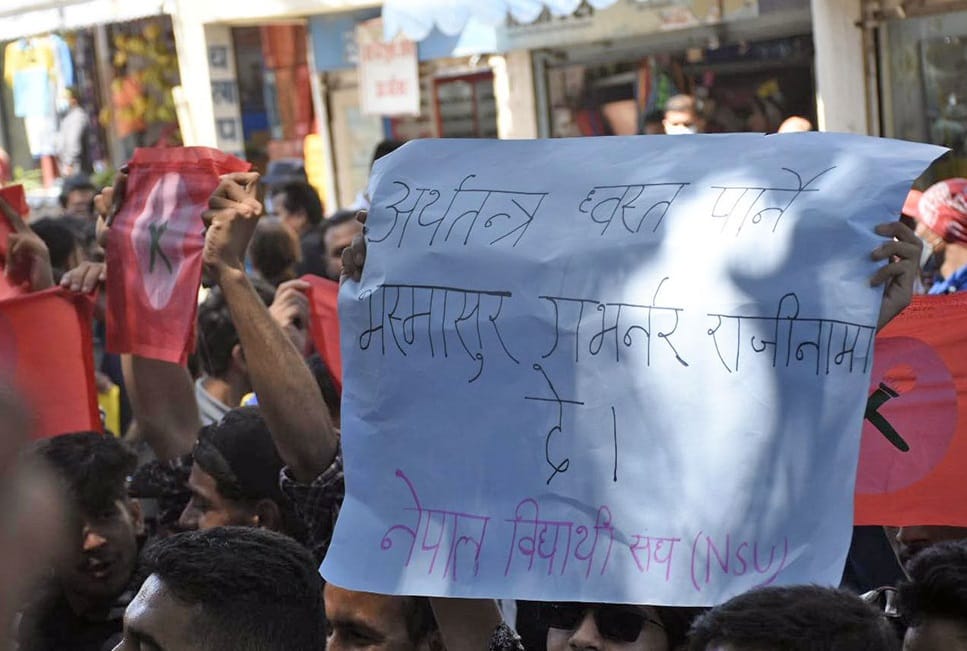 काठमाडौं । नेपाल राष्ट्र बैंकका गभर्नर महाप्रसाद अधिकारीको राजीनामा माग गर्दै सत्तारूढ दल नेपाली कांग्रेस र माओवादी केन्द्र निकट विद्यार्थी संगठनहरूले बालुवाटारमा प्रदर्शन गरेका छन् ।