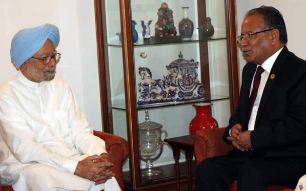 काठमाडौँ– नेपाल कम्युनिष्ट पार्टी (नेकपा) का अध्यक्ष एवं पूर्वप्रधानमन्त्री पुष्पकमल दाहाल ‘प्रचण्ड’ र भारतीय काँग्रेस पार्टीका नेता तथा पूर्वप्रधानमन्त्री मनमोहन सिंहबीच आज भेटवार्ता भएको छ ।