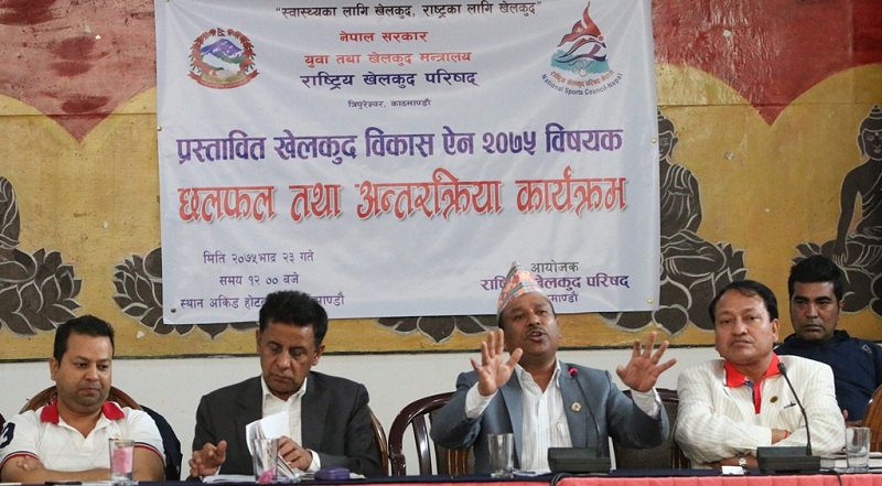 मन्त्रालयले तयार पारेको खेलकूद ऐन-२०७५ को मस्यौदामाथि छलफल गर्दै उनले खेलकूदलाई के गर्दा राम्रो हुन्छ, त्यसैअनुसारको नीति नियम बनाउने जानकारी दिए ।