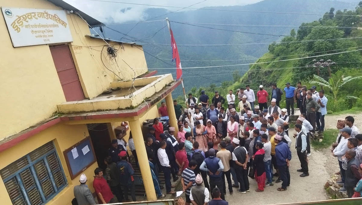 दैलेख डुङ्गेश्वर गाउँपालिकामा तालाबन्दी भएको छ । करारमा कार्यरत कर्मचारीलाई हटाएको भन्दै गाउपालिकामा तालाबन्दी गरिएको हो । जागिरबाट हटाइएका करारका कर्मचारी तथा राजनीतिक दलहरूले गाउँपालिकाको कार्यालयमा तालाबन्दी गरेको डुङ्गेश्वर गाउँपालिका–२ का वडाध्यक्ष यामबहादुर विष्टले बताए ।