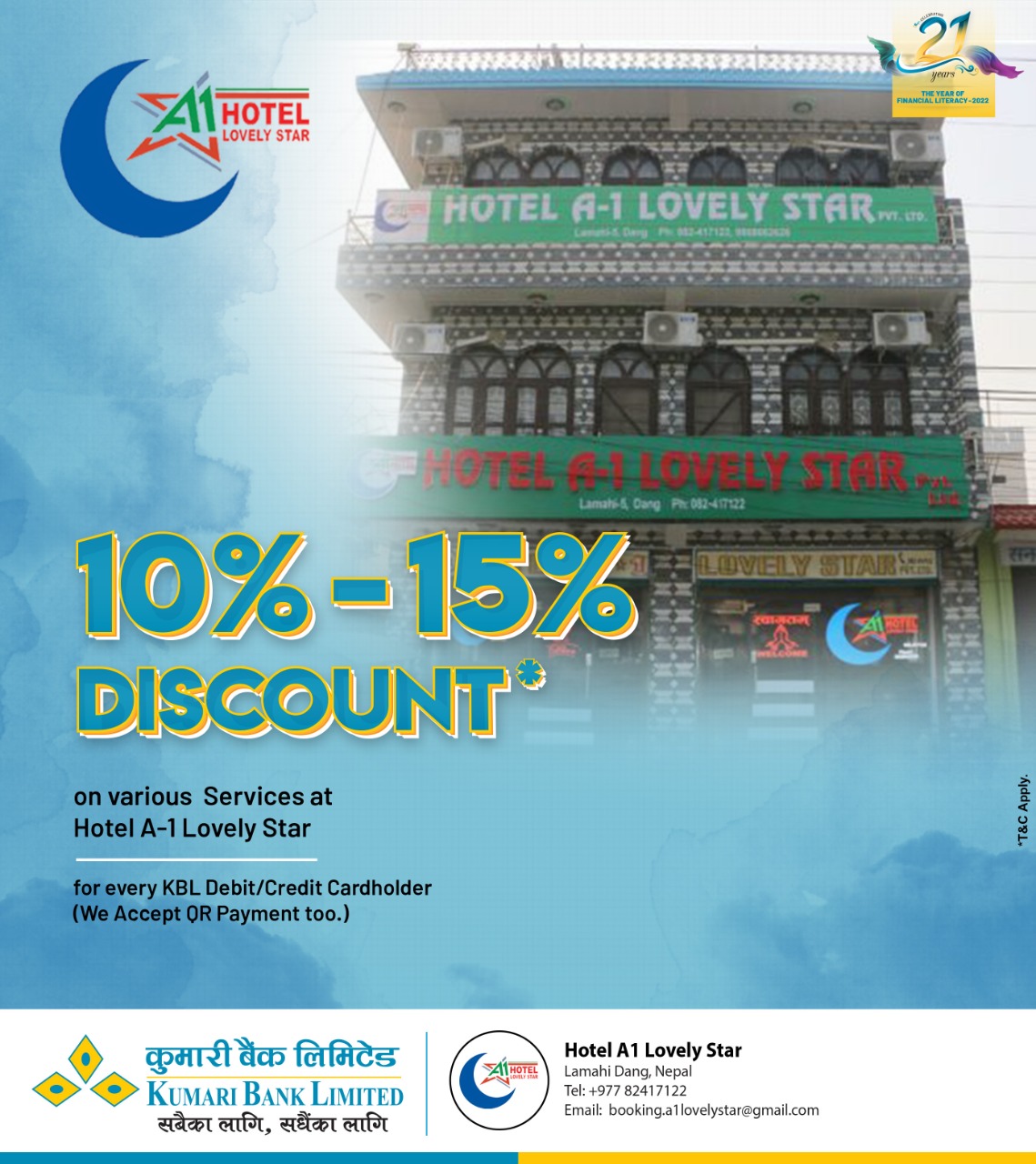 कुमारी बैंकका ग्राहकले होटेल ए-१ लभली स्टारमा छुट प्राप्त गर्ने