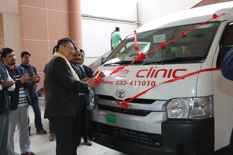 टोयोटा हायस गाडीलाई जापानस्थित टोयो फ्याक्ट्रीले दिएको मोबाईल क्लिनिकबाट सिरहा, सप्तरी, उदयपुर, सिन्धुली र धनुषाका जनताहरुले लाभ पाउने जारी विज्ञप्तिमा उल्लेख छ ।