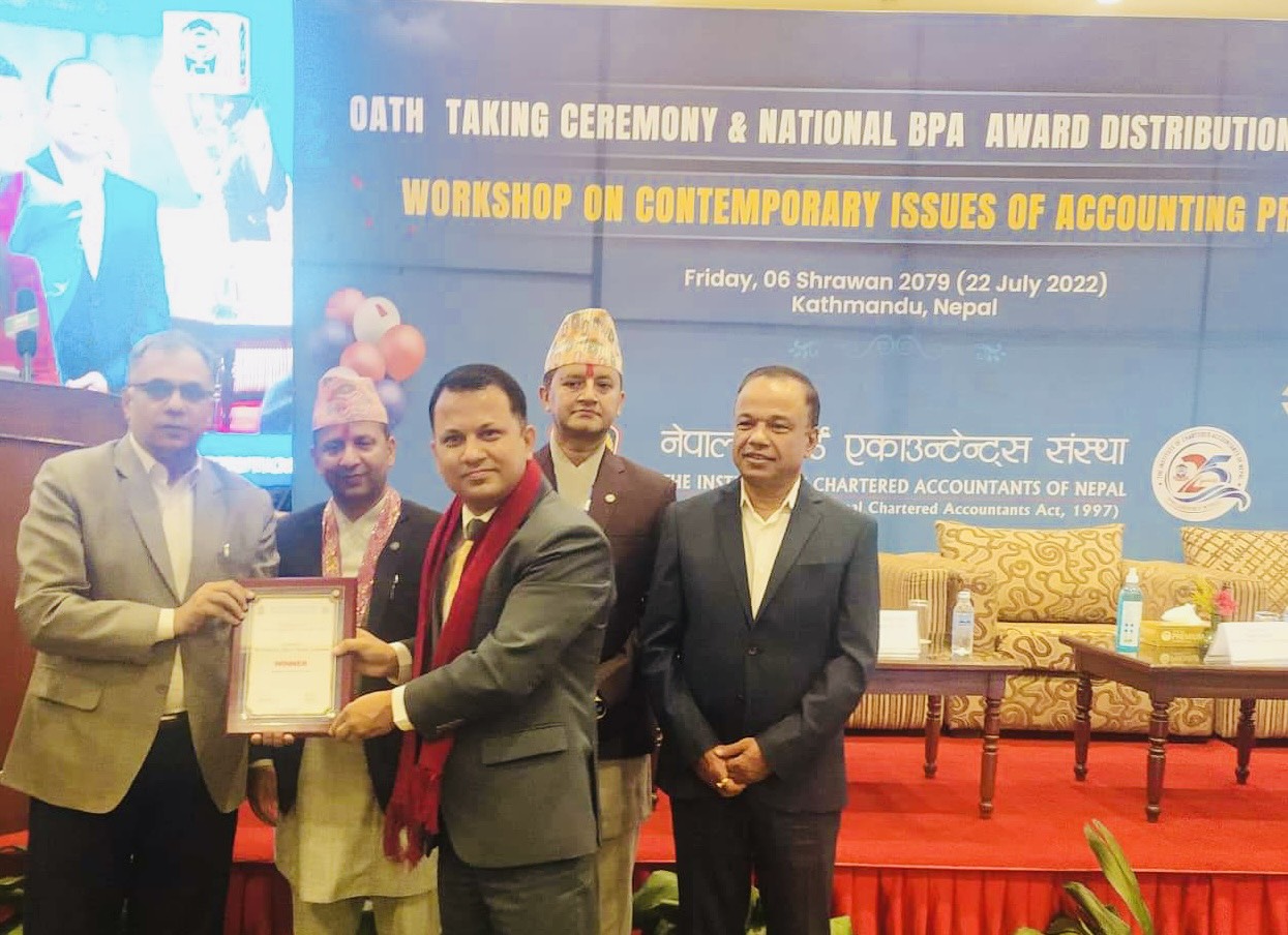 काठमाडौं । नेपाल चार्टर्ड एकाउन्टेन्ट्स संस्था (आईक्यान) ले हरेक वर्ष नेपाल वित्तीय प्रतिवेदन मान (एनएफआरएस) प्रणाली मार्फत वित्तीय विवरण प्रकाशन गर्ने उत्कृष्ट संस्थाहरुलाई प्रदान गर्दै आएको विभिन्न विधाहरुमध्ये वित्तीय क्षेत्रतर्फ आर्थिक वर्ष २०७७/०७८ को लागि उत्कृष्ट वार्षिक प्रतिवेदन प्रस्तुत पुरस्कार मुक्तिनाथ विकास बैंकले प्राप्त गरेको छ । यो पुरस्कारबाट मुक्तिनाथ बैंक आर्थिक वर्ष २०७५/०७६ , २०७६/०७७ र २०७७/०७८ गरि लगातार तीन पटक पुरस्कृत भएको हो ।