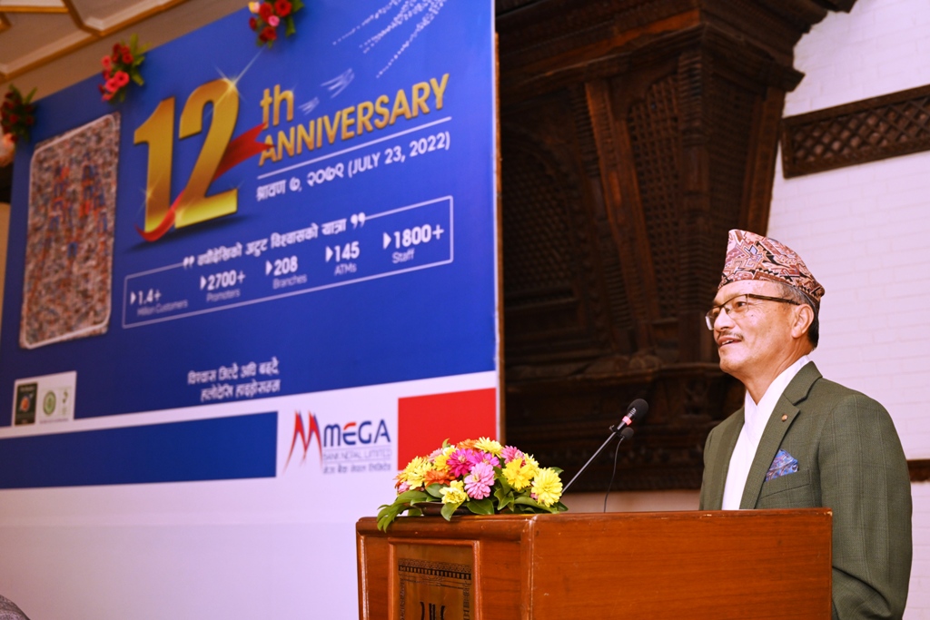 काठमाडौं । मेगा बैंक नेपाल लिमिटेड १२ बर्ष पूरा गरी १३ बर्षमा प्रवेश गरेको छ । १२औँ वार्षिकोत्सवका अवसरमा काठमाडौंमा आयोजित कार्यक्रममा मेगा बैंक नेपाल लिमिटेडका अध्यक्ष भोजबहादुर शाहले बैंकलाई देशकै अग्रणी बैंक बनाउन अहम भूमिका निर्वाह गर्ने सबैलाई धन्यवाद व्यक्त गरे ।