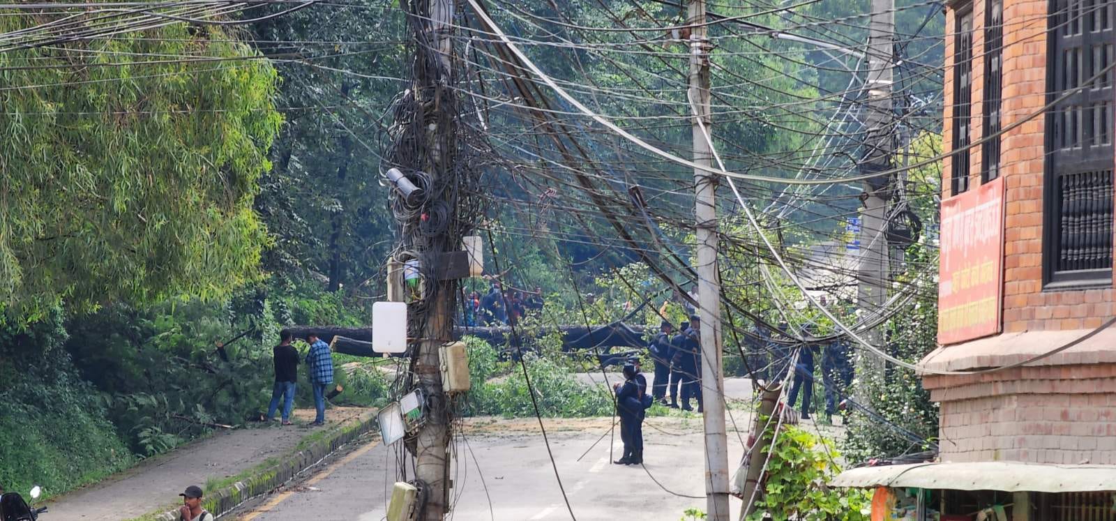 भक्तपुर । भक्तपुर सल्लाघारी क्षेत्रमा रहेको रुखहरू काट्न थालिएको छ । पुरानो र कमजोर रुख ढलेका कारण आइतबार गम्भीर दुर्घटना भएपछि सडकमा खतरा बनिरहेका रुखहरू सोमबारदेखि काट्न सुरु भएको हो ।