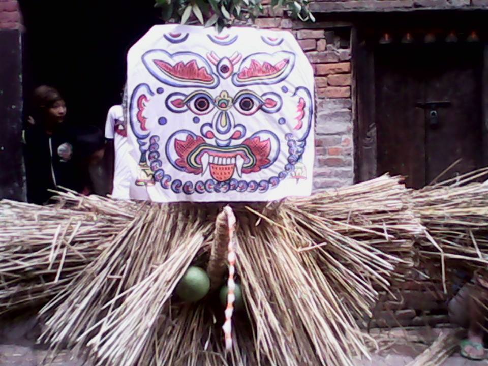 टोलटोलमा स्थानीयस्तरमा नर्कट, छ्वाली, पराल संकलन गरी संकलित नर्कट, छ्वालीबाट तीनखुटे गथामग बनाइन्छ । घरमा फाल्नुपर्ने पुरानो नाङ्लोमा मुख, नाक, कानलगायतका ज्ञानेन्द्रिय अंग लेखी हाँंडीको टाउको दिइएको हुन्छ ।