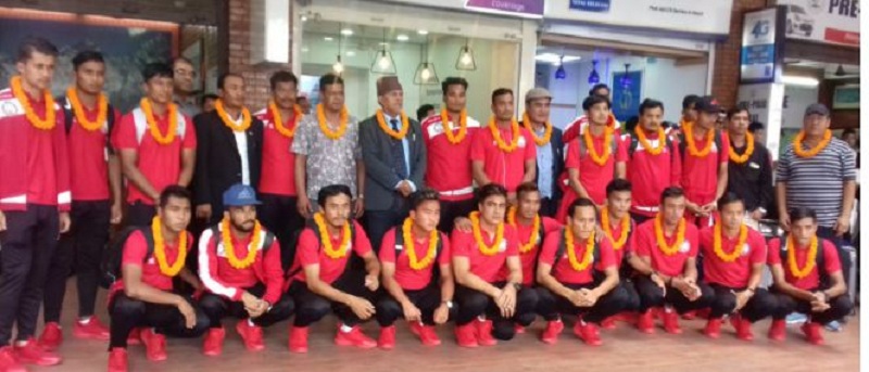खेलाडीसहितको टोलीलाई अखिल नेपाल फुटबल संघ ‘एन्फा’का पदकाधिकारीहरुले त्रिभुवन अन्तर्राष्ट्रिय विमानस्थलमा स्वागत गरेका थिए । बुधवार भएको सेमिफाइनल खेलमा माल्दिभ्ससँग ३-० गोलले पराजित हँदै नेपालको साफ यात्रा टुङगिएको थियो ।