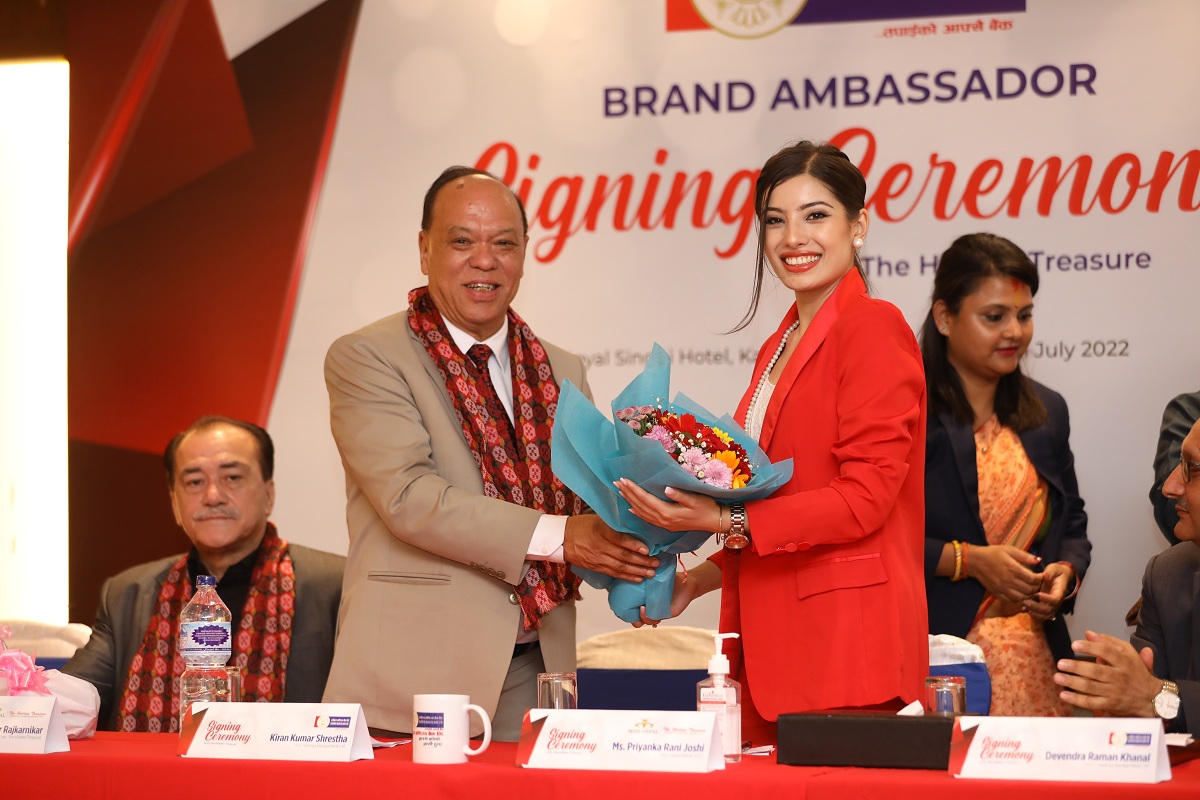 बैंकका प्रमुख कार्यकारी अधिकृत किरणकुमार श्रेष्ठले राष्ट्रिय बाणिज्य बैंकले प्रवाह गरिरेको आधुनिक बैंकिङ सेवाको बारेमा खासगरी युवावर्गका ग्राहकहरुमा थप जानकारी दिई आफ्नो व्यवसायलाई प्रवद्र्धन गर्नको निमित्त बैंकले आफ्नो ब्रान्ड एम्बेसडरमा मिस नेपाल वल्र्ड-२०२२ प्रियंका रानी जोशीलाई नियुक्ती गरिएको बताए ।