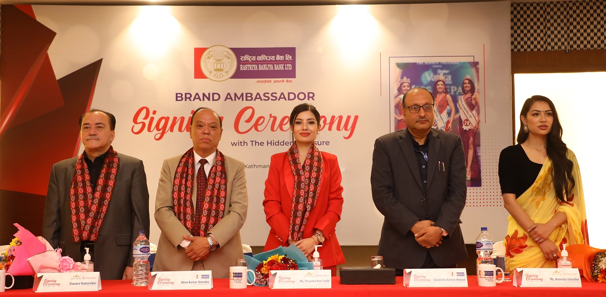 काठमाडौं । राष्ट्रिय वाणिज्य बैंक लिमिटेडको आफ्नो व्यवसाय प्रवर्द्धनको लागि मिस नेपाल वर्ल्ड-२०२२ लाई सोमबार एक कार्यक्रमका बीच ब्रान्ड एम्बेसडरमा नियुक्ती गरिएको छ । राष्ट्रिय वाणिज्य बैंक र दी हिडन ट्रेजर प्रालिबीच भएको सम्झौतामा बैंकको तर्फबाट प्रमुख कार्यकारी अधिकृत किरणकुमार श्रेष्ठ र दी हिडन ट्रेजर प्रा.लिको तर्फबाट अध्यक्ष दीवाकर राजकर्णिकारले हस्ताक्षर गरेका हुन् ।