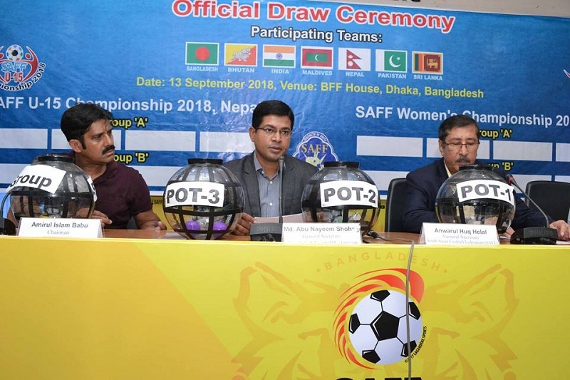 बङ्गलादेशको ढाकामा बिहीबार सार्वजनिक गरिएको समूह चरणको लक्की ‘ड्र’मा नेपालसहित बङ्गलादेश, भुटान र पाकिस्तान समूह ‘ए’ मा तथा समूह ‘बी’मा भारत, माल्दिभ्स र श्रीलङ्का रहेका छन् ।