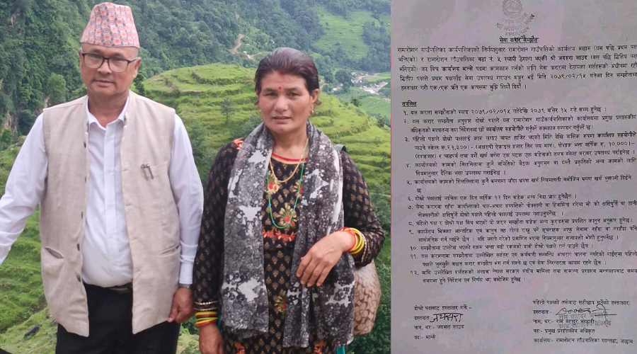 अध्यक्ष साउँदको ठाडो निर्देशनमा उनकी श्रीमती साउँदलाई विज्ञापन बिना नै कार्यालय सहयोगीको कोटामा भान्से पदमा नियुक्त गरेका थिए । करार सेवा अन्तरगत १५ जेठ गतेदेखि लागू हुनेगरि १५ मंसिरसम्म (६ महिना) का लागि उनले सो नियुक्त गरेका थिए । जसअनुसार श्रीमती जयसराले गाउँपालिकाबाट मासिक २१ हजार ३ सय तलब र वार्षिक १० हजार पोशाक भत्ता सेवा सुविधा पाउनेछिन् ।