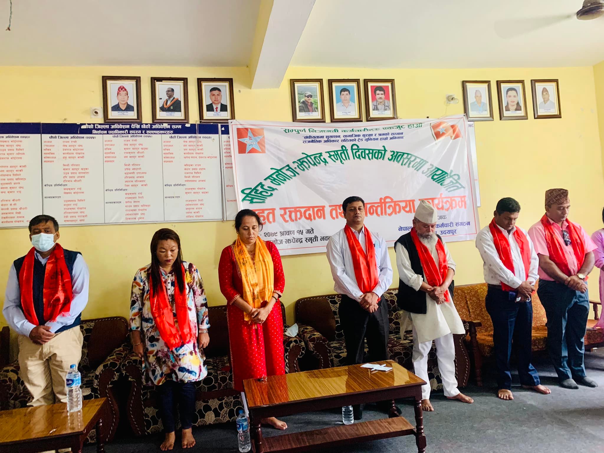 उदयपुर । नेपाल निजामती कर्मचारी संगठन उदयपुरले सहिद मनोज–झपेन्द्र–सुरेन्द्रको सम्झनामा रक्तदान कार्यक्रमको आयोजना गरेको छ ।