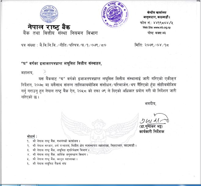 काठमाडौं । अबदेखि लघुवित्त वित्तीय संस्थाले सहायक आवधिक ऋणपत्र जारी गर्न सक्ने भएका छन् । नेपाल राष्ट्र बैंकले चालु आर्थिक बर्ष २०७९-०८० को मौद्रिक नीतिमा उल्लेख भए अनुसारको उक्त व्यवस्था कार्यान्वयनमा ल्याउनको लागि लघुवित्त वित्तीय संस्थाहरुलाई निर्देशन दिएपछि लघुवित्त संस्थाहरुले यस्तो सुविधा पाएका हुन ।