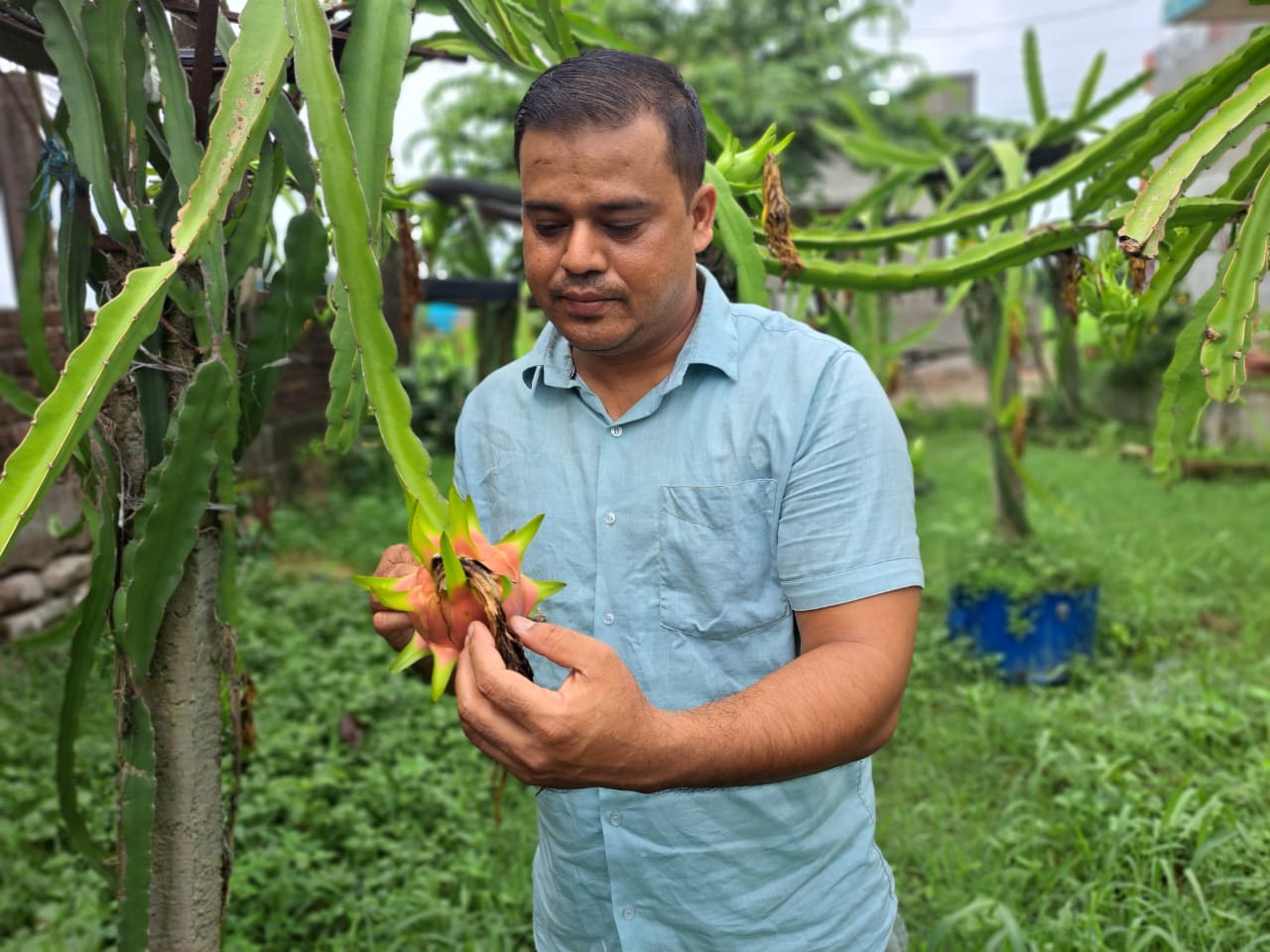 ‘लुम्बिनी रण अम्बिका शाह आँखा अस्पतालमा कार्यरत डा. सल्मा केसीले तीन वर्षअघि ड्रागन फल ल्याउनुभएको थियो, फल खाएपछि मन पर्यो, उहाँसगै एउटा विरुवा ल्याएर रोपे, त्यसपछि ड्रागन फलको खेतीप्रति रुचि बढ्दै गयो ।’