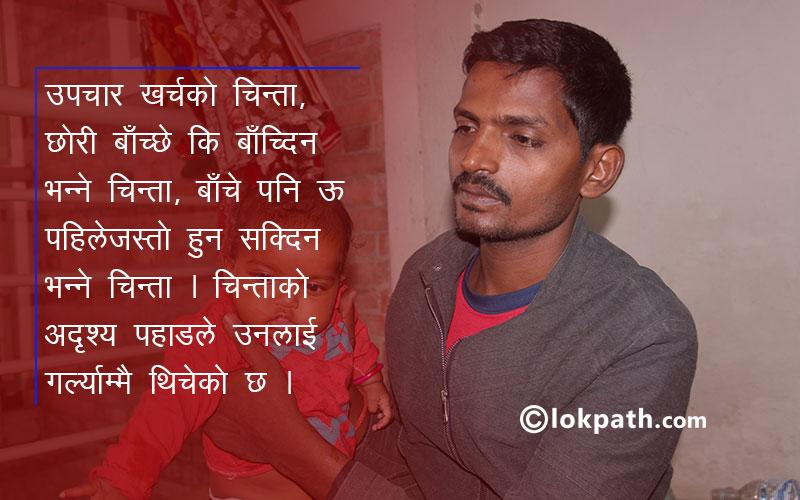 ५ महिने कान्छी छोरीलाई काखमा खेलाउँदै दास बोले ‘डाक्टरहरुले अवस्था नाजुक छ भनेका छन् । खै के हुने हो । बाँचे पनि अब त यसको जिन्दगी बर्बाद भइहाल्यो । पहिला जस्तो कहिले हुन्छे होला मेरो छोरी ?’