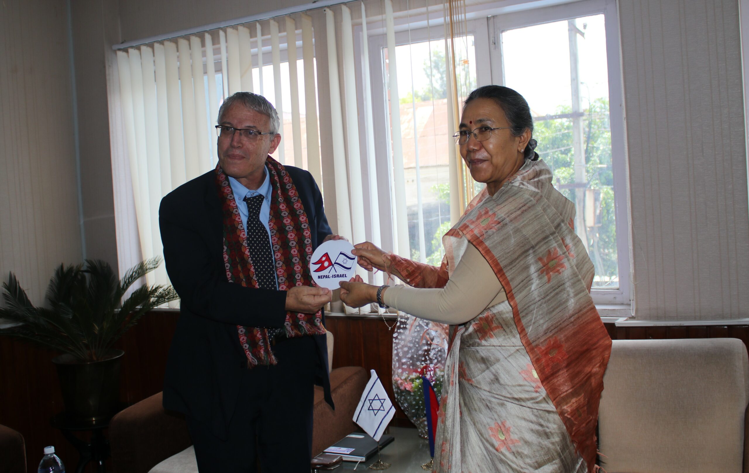 काठमाडौं । भूमि व्यवस्था सहकारी तथा गरिबी निवारण मन्त्री शशी श्रेष्ठ र नेपालका लागि इजरायली राजदूत हनान गोडरबीच आज शिष्टाचार भेटवार्ता भएको छ । मन्त्रालयमा भएको भेटघाटमा दुई देशबीचको सम्वन्ध र एक आपसमा भइरहेको सहयोगका विषयमा कुराकानी भएको बताइएको छ ।