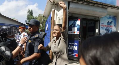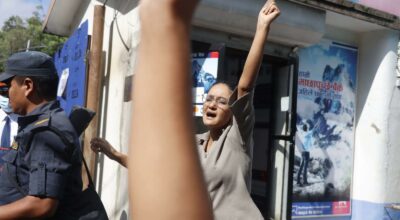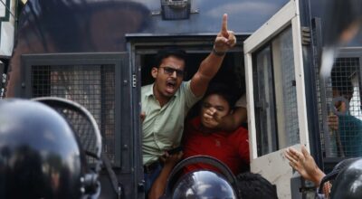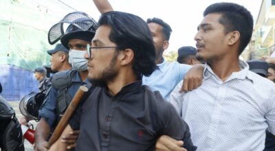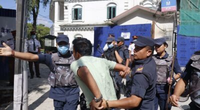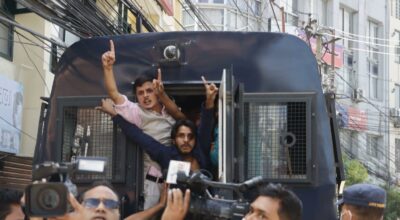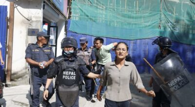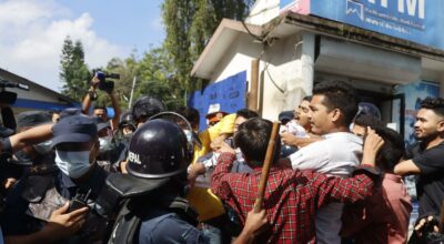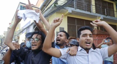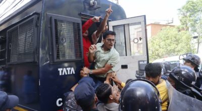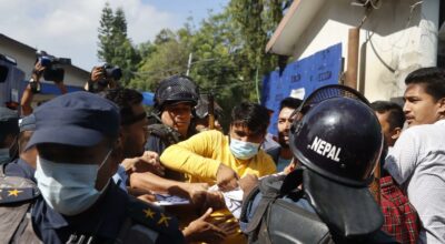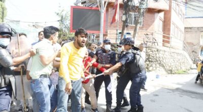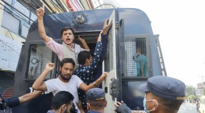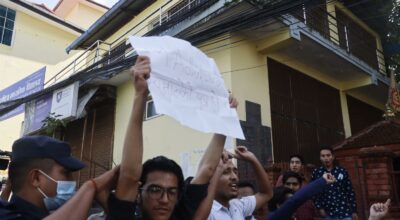 काठमाडौं । सत्तारुढ दल नेपाली कांग्रेस निकट विद्यार्थी संघ नेपाल विद्यार्थी संघ (नेविसंघ) ले गभर्नर महाप्रसाद अधिकारीविरुद्ध प्रर्दशन गरेको छ ।