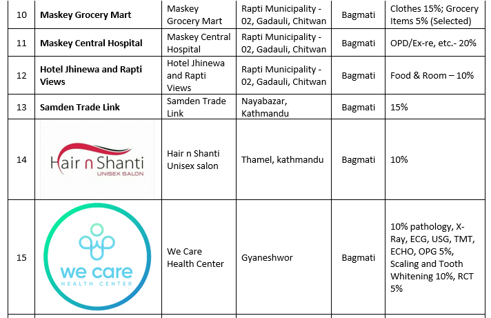 बैंकले हालसम्म यस्ता विभिन्न ६९ साझेदारहरुसँग ग्राहकहरुलाई छुट प्रदान गर्ने सम्वन्धमा सम्झौता गरिसकेको छ ।