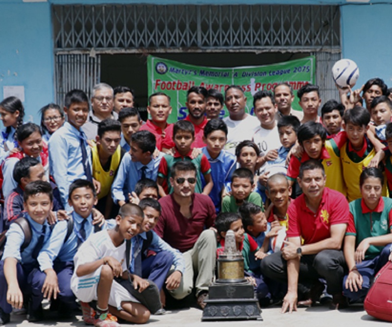 विद्यार्थीहरुलाई फुटबलतर्फ आकर्षण गर्ने मुख्य उद्धेश्यले आयोजना गरिएको ‘ट्रफी टूर’को चौथो दिनमा बिहीवार राष्ट्रिय खेलाडीद्वय नीराजन खड्का र सुनिल बलको उपस्थिती रहेको थियो ।