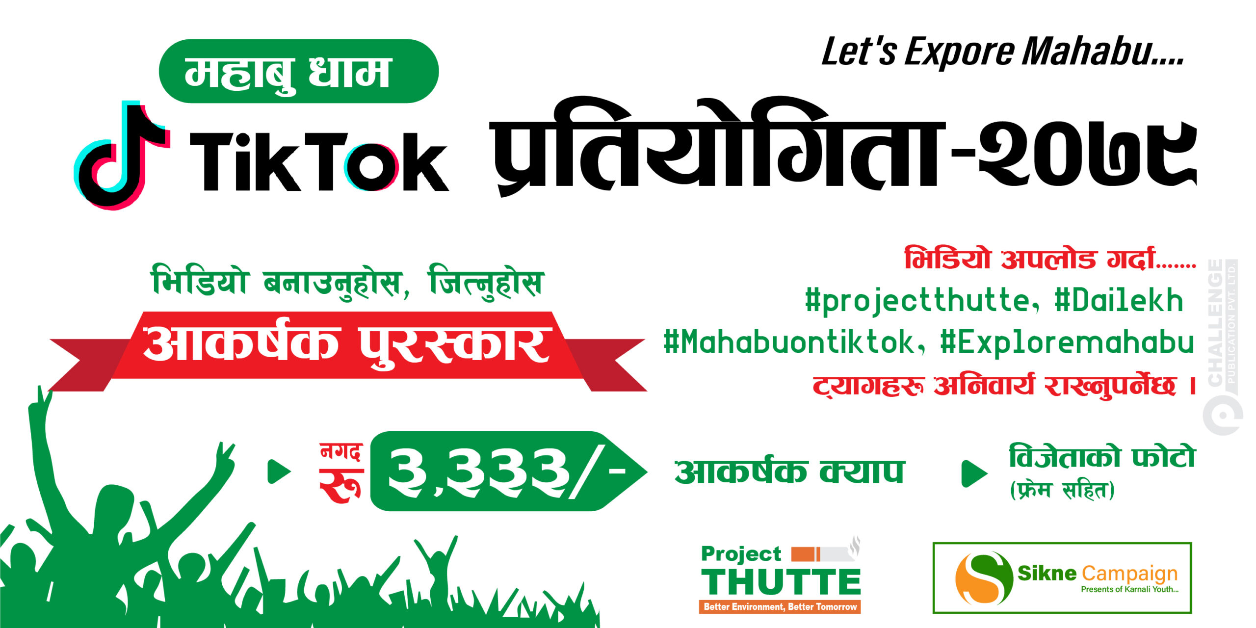 सुर्खेत । सिक्ने अभियानद्वारा संचालित प्रोजेक्ट ठुट्टेले दैलेखमा टिकटक प्रतियोगितको आयोजना गरेको छ ।