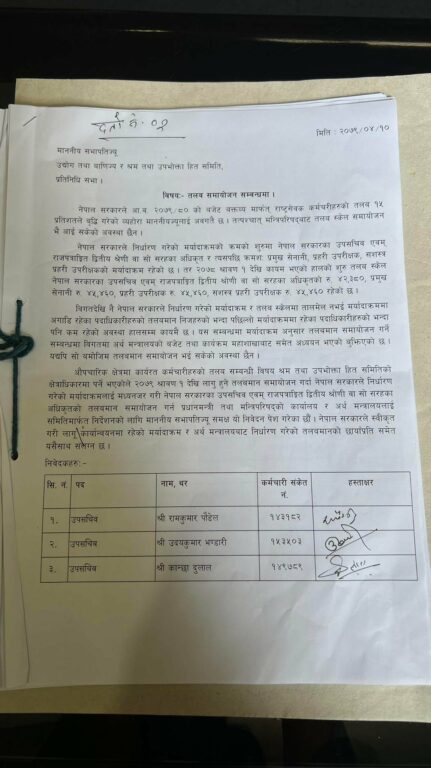 मर्यादाक्रम अनुसार तलब वृद्धि माग गर्नेहरु (निवेदनसहित)