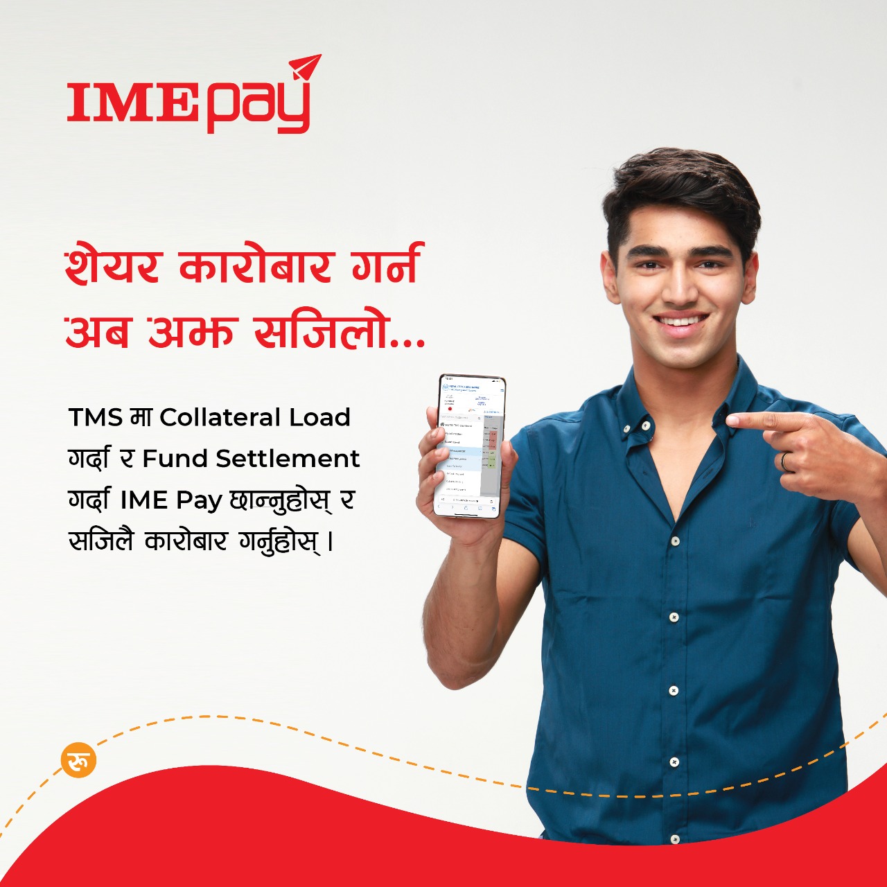 काठमाडौं । सेयर लगानीकर्ताले आफ्नो टिएमएसमार्फत ‘आइएमई पे’ छनौट गरी आफूले ब्रोकरलाई सेयर खरिद गरे बापत गर्नुपर्ने भुक्तानी साथै सेयर खरिद गर्न चाहिने कोलेटरल लोड गर्न सक्नेछन् ।