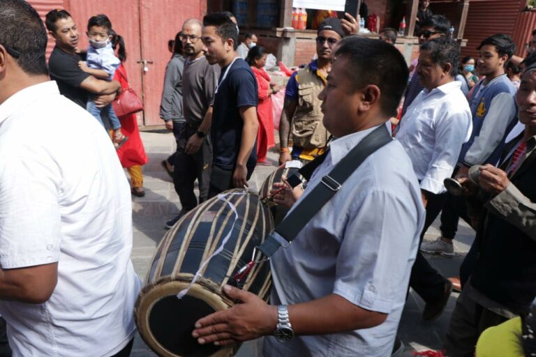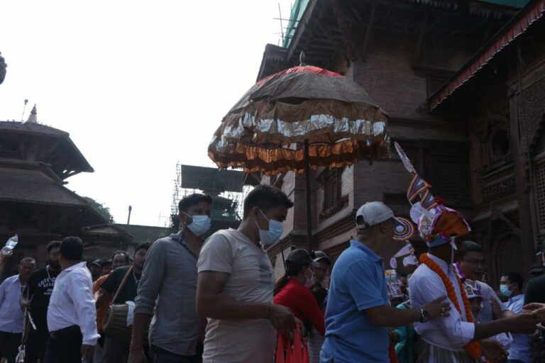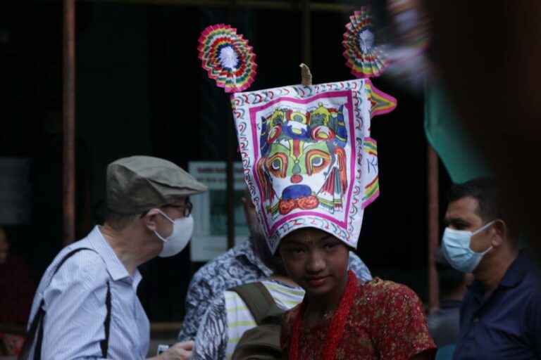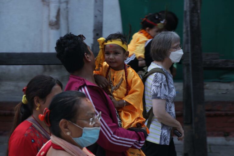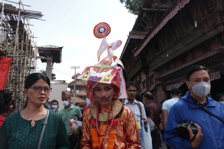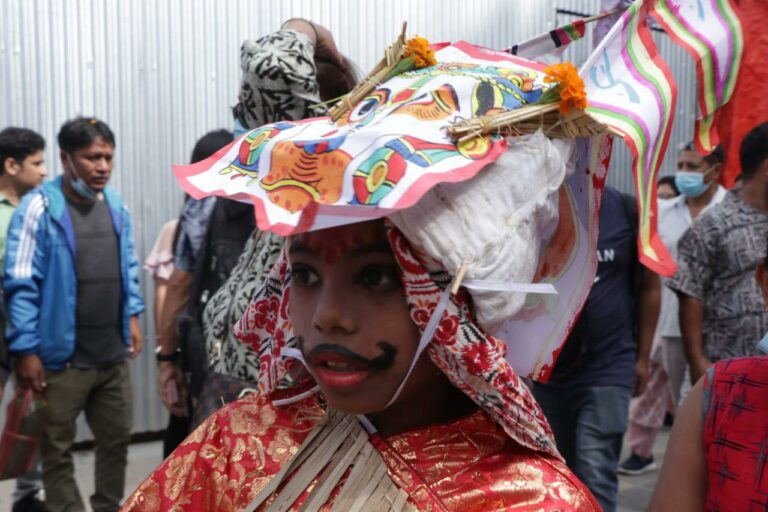 काठमाडौं । गाईजात्राको अवसरमा शनिबार काठमाडौंको वसन्तुपरमा मृतकहरूको सम्झनामा बालकलाई गाईको भेषधारण गरी बाजागासहित सहर परिक्रमा गराइँदै ।