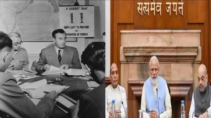 तस्बिरमा भारतका अन्तिम वाइसराय लर्ड माउन्टबेटन छन्, जो भारतका नेताहरूसँग भेट गरेर सत्ता हस्तान्तरणको तयारी गरिरहेका छन्। यो तस्बिर भारत स्वतन्त्र हुनुभन्दा ११ दिन अघिको हो । दोस्रो तस्बिरमा भारतका प्रधानमन्त्री नरेन्द्र माेदीसहितकाे मन्त्रिपरिषद् बैठक सञ्चालन भइरहेकाे छ । उनीसँगै गृहमन्त्री र रक्षामन्त्री पनि छन् ।