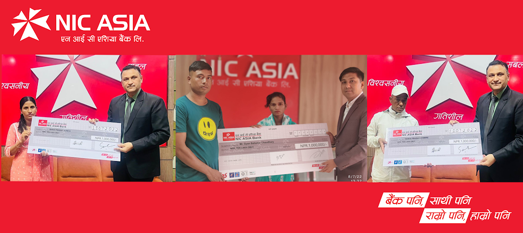 काठमाडौं । एनआईसी एशिया बैंकले सर्वश्रेष्ठ बचत खाता योजना अन्तर्गत बैंकका विभिन्न शाखामा खाता खोलेका तीन जना ग्राहकहरुको परिवारलाई बीमा बापतको रकम प्रदान गरेको छ । दुर्घटनामा परि मृत्यु भएका ग्राहकहरुको परिवारलाई बैंकले प्रतिव्यक्ती १० लाखका दरले ३० लाख रुपैयाँ प्रदान गरेको हो ।