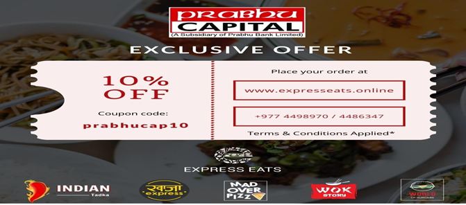 प्रभु क्यापिटलले ल्यायाे विशेष अफर, एक्सप्रेस ईट्सबाट अनलाईन अर्डर गर्दा १० प्रतिशतसम्म छुट