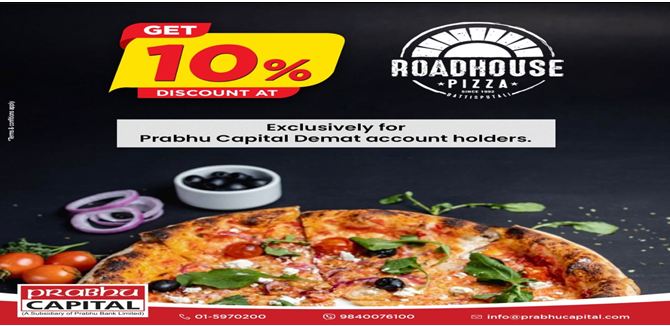 यसैगरी, क्यापिटलको हितग्राही ग्राहकले पाउने अर्को बिशेष अफर अन्तर्गत रोड हाउस पिजा बत्तीसपुतली, काठमाडौंबाट समेत सेवा लिदा १० प्रतिशत छूट पाउने भएका छन् ।