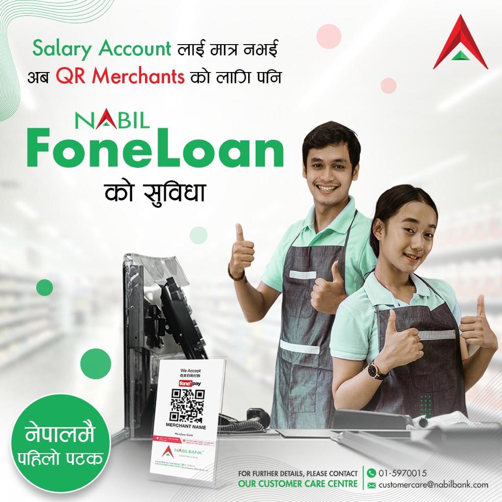 काठमाडौं । नबिल बैंकले नेपालमा पहिलो पटक आफ्ना क्यू आर मर्चेन्टलाई फोन लोनको सुविधा शुभारम्भ गरेको छ । नबिल फोन लोन–क्यू आर मर्चेन्ट नामको सेवाको सुरुवात् गरेसँगै क्यू आर मर्चेन्टले घरमा बसी बसी कुनैपनि धितो बिना नै नबिल स्मार्ट बैकिंङ मार्फत् तुरुन्तै कर्जा पाउन सक्नेछन् ।