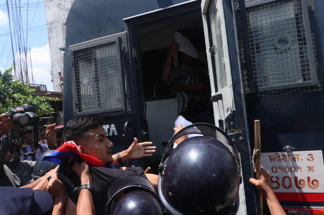 काठमाडौं । नागरिकता विधेयकको विरोधमा देशभक्त युवा नेपालले बिहीबार काठमाडौमा संसद् भवनअगाडि गरेको प्रदर्शनमा प्रहरी हस्तक्षेप भएको छ । प्रहरीले सात प्रदर्शनकारी युवालाई पक्राउ गरेको छ ।