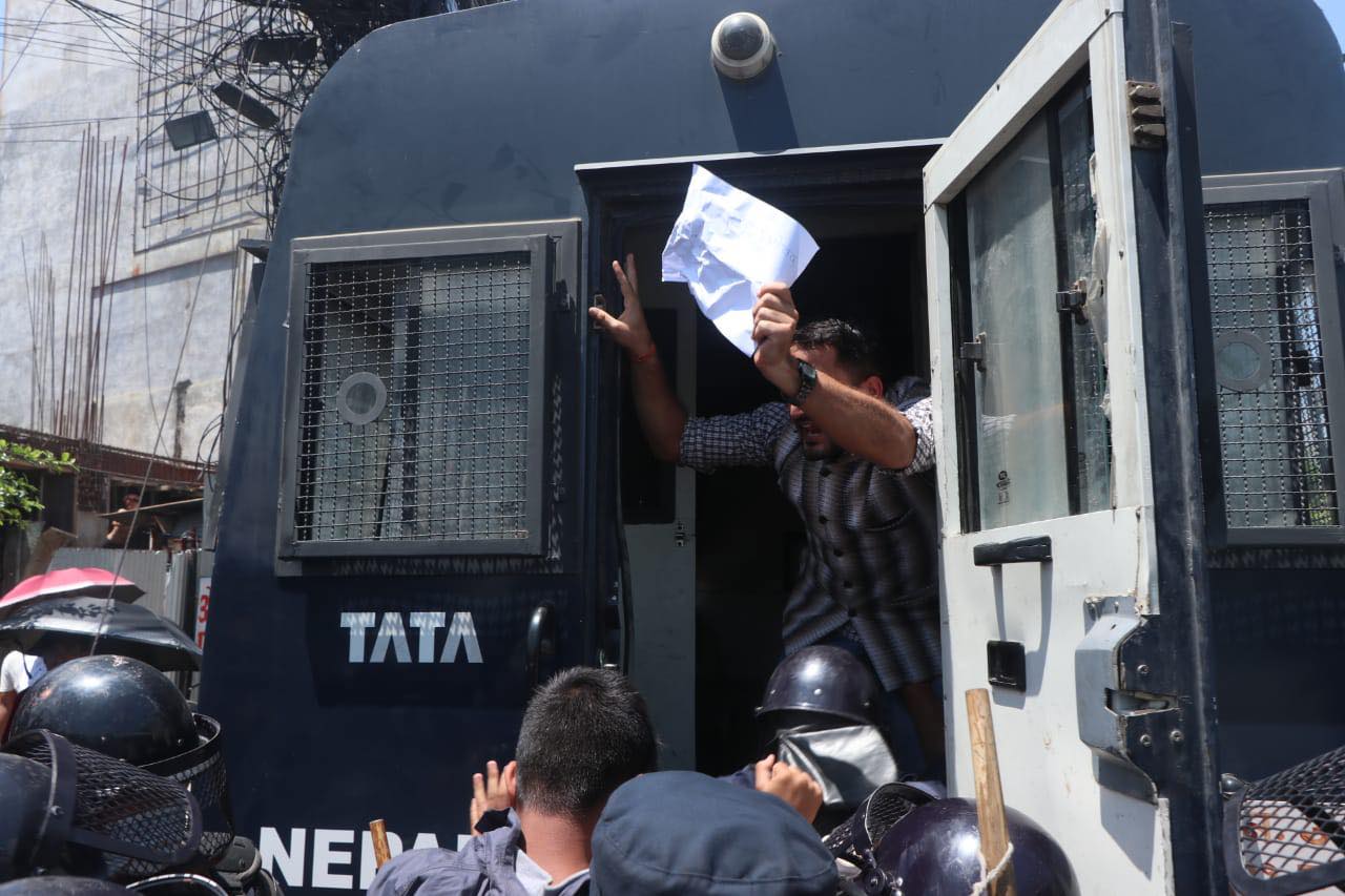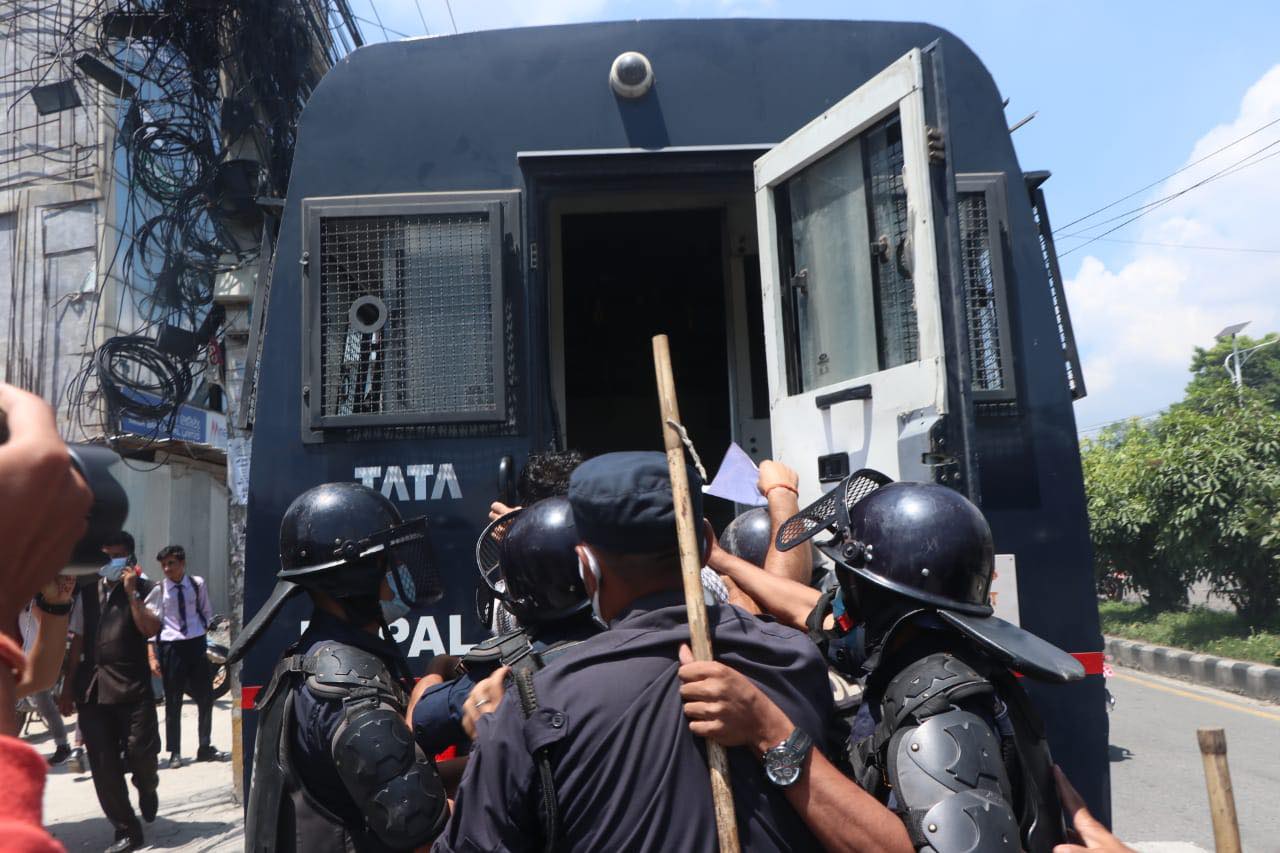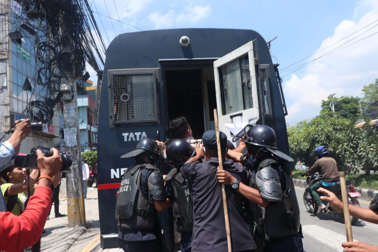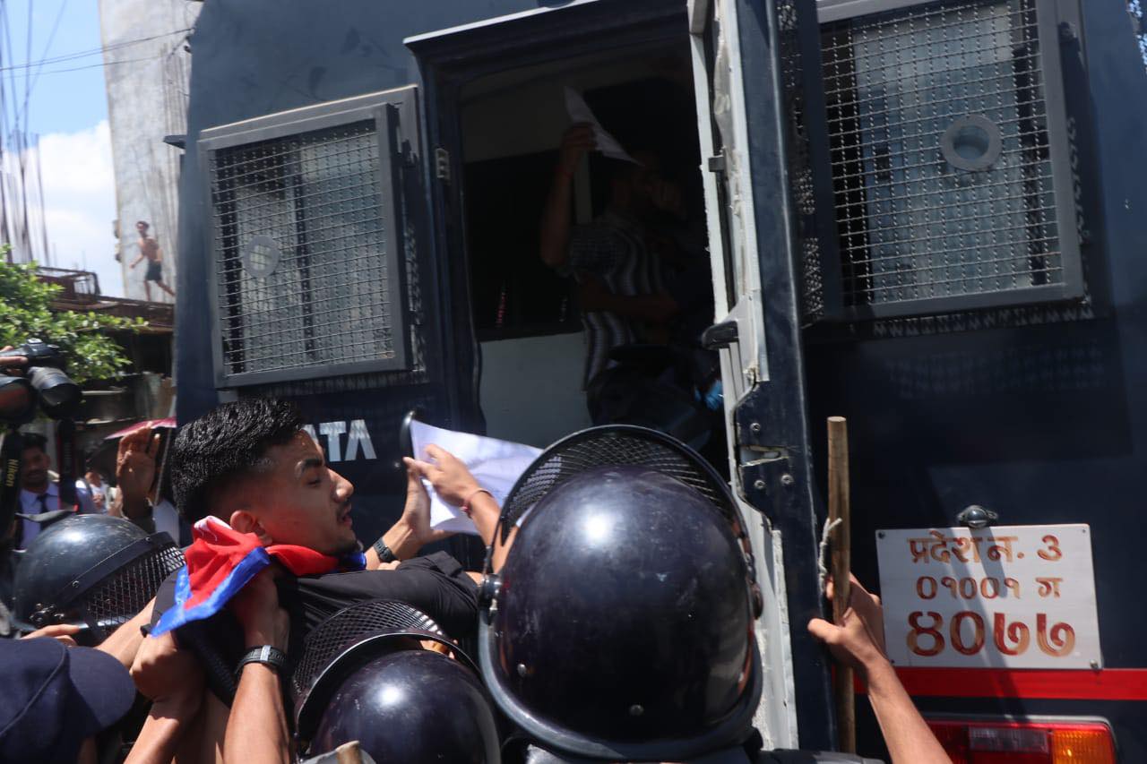 काठमाडौं । नागरिकता विधेयकको विरोधमा देशभक्त युवा नेपालले बिहीबार काठमाडौमा संसद् भवनअगाडि गरेको प्रदर्शनमा प्रहरी हस्तक्षेप भएको छ । प्रहरीले सात प्रदर्शनकारी युवालाई पक्राउ गरेको छ ।