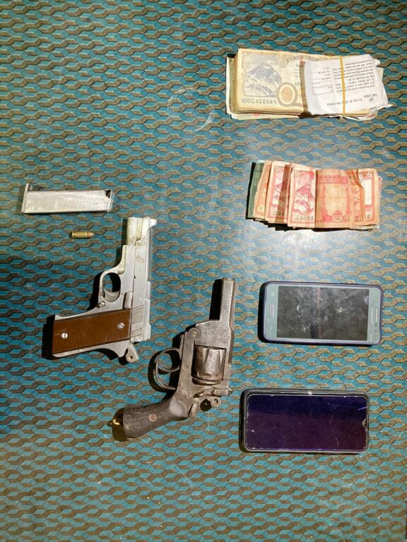 उनको साथबाट अटोमेटिक चाईनिज पेस्तोल एक थान, म्याग्जिन एक थान, ७.०५ एमएम राउण्ड एक थान र सिक्सर पेस्तोल एक थान बरामद भएको प्रहरीले जनाएको छ ।