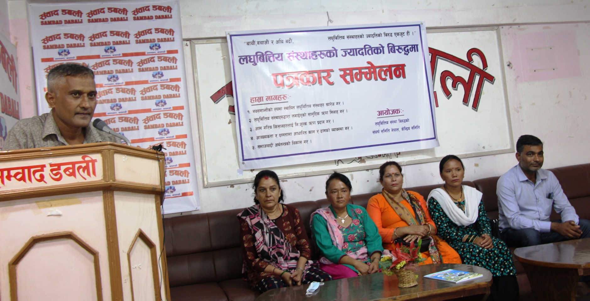 संघर्ष समितिका केन्द्रीय अध्यक्ष मनिराम ज्ञवालीले कैलालीकी रेश्मा चौधरीलगायतका हजारौंलाई आत्महत्या र लाखौंलाई घरबार विहिन हुन बाध्य पार्ने अमानविय लघुवित्तिय संस्थाहरुले नेपाली समाजलाई विकृत बनाउन उदद्त रहेको आरोप लगाएका छन् । ज्ञवालीले देशभरी करिब ५८ लाख लघुवित्तका सदस्य र ३३ लाख ऋणी रहेकोले लघुवित्तहरुको अराजकता रोक्न पीडितहरुको ऋण मिनाहा र लघुवित्तहरुलाई खारेज गर्नुको विकल्प नरहेको बताए ।